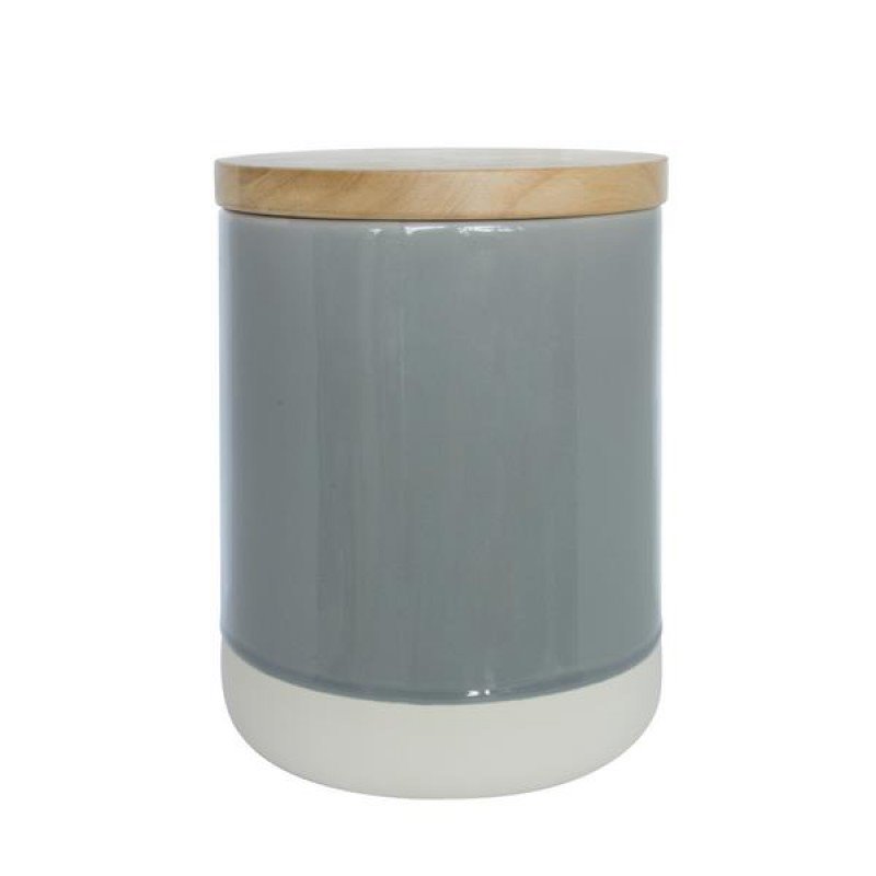 Deze mooie design pot met deksel van eco-collection is geproduceerd van steengoed met een grijze glazuurlaag. De verf met de grijze glazuurlaag is biologisch afbreekbaar. Het deksel is van rubberhout.
