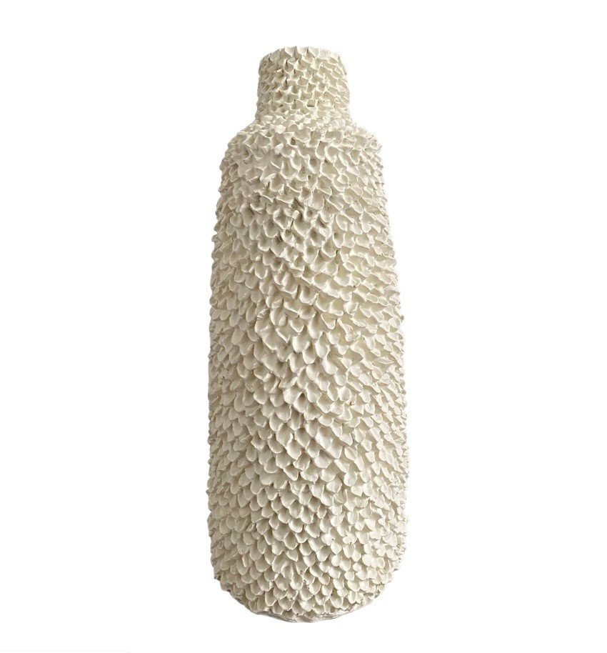 Prachtige reliefvaas van polyresin Ivory Pearl van Kersten. Bijzonder uiterlijk en past in vele interieurstijlen. Prachtig met eenvoudige tak of hippe droogbloemen.